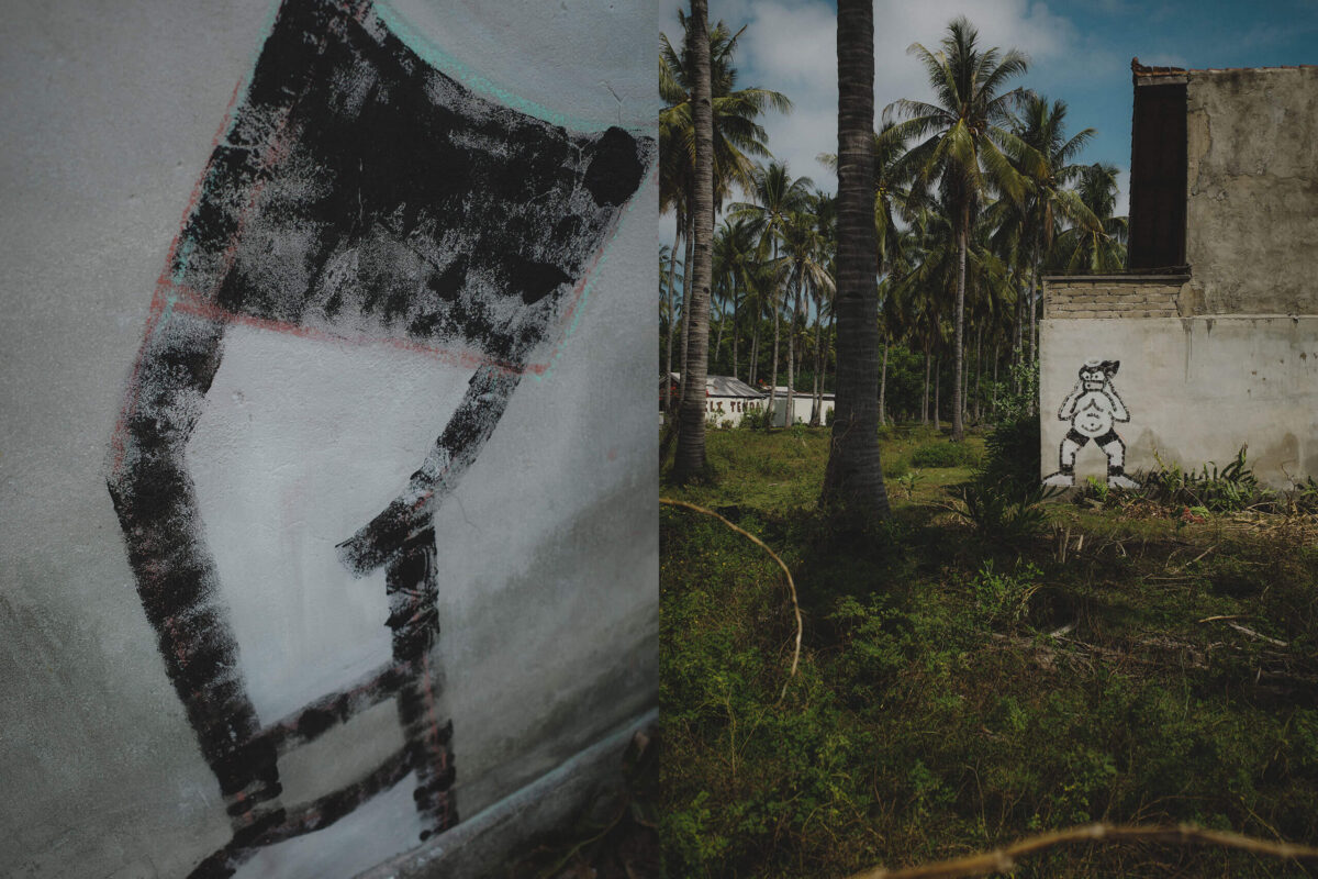 I remember my first time on the island. It was a warm night as I rode my bike in the dark, following a road parallel to the ocean. With only a strip of golden sand separating me from the sea. The stars illuminated my path. I was filled with happiness. If it could be torn out of me, the happiness that would pour forth would be enough for every person in the world. I remember glancing up at the sky while riding. That view is still with me, a magical moment. I left a part of myself there and some mementos on the walls for the local people. We will surely meet again someday.
